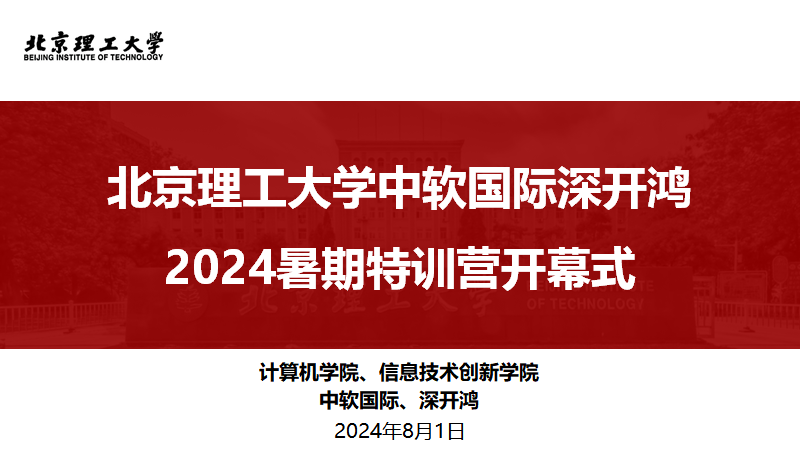最后,曾杨杰感谢信息技术创新学院、中软国际、深开鸿深入开展校企联合人才培养工作,期待未来能够继续与中软国际、深开鸿深化校企合作。他介绍了本次暑期集训课程的具体安排,并希望同学们能够在本次课程中学有所获、学有所成,预祝本次北京理工大学中软国际深开鸿2024暑期特训营圆满成功,并宣布特训营正式开幕。